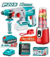 Bộ combo máy xay sinh tố KMJB022R dùng pin, máy khoan động lực TRHLI20228 Toal TOSLI230617 pin 20V và bộ 8 mũi khoan bê tông TACSD19101 Total TOSLI23061