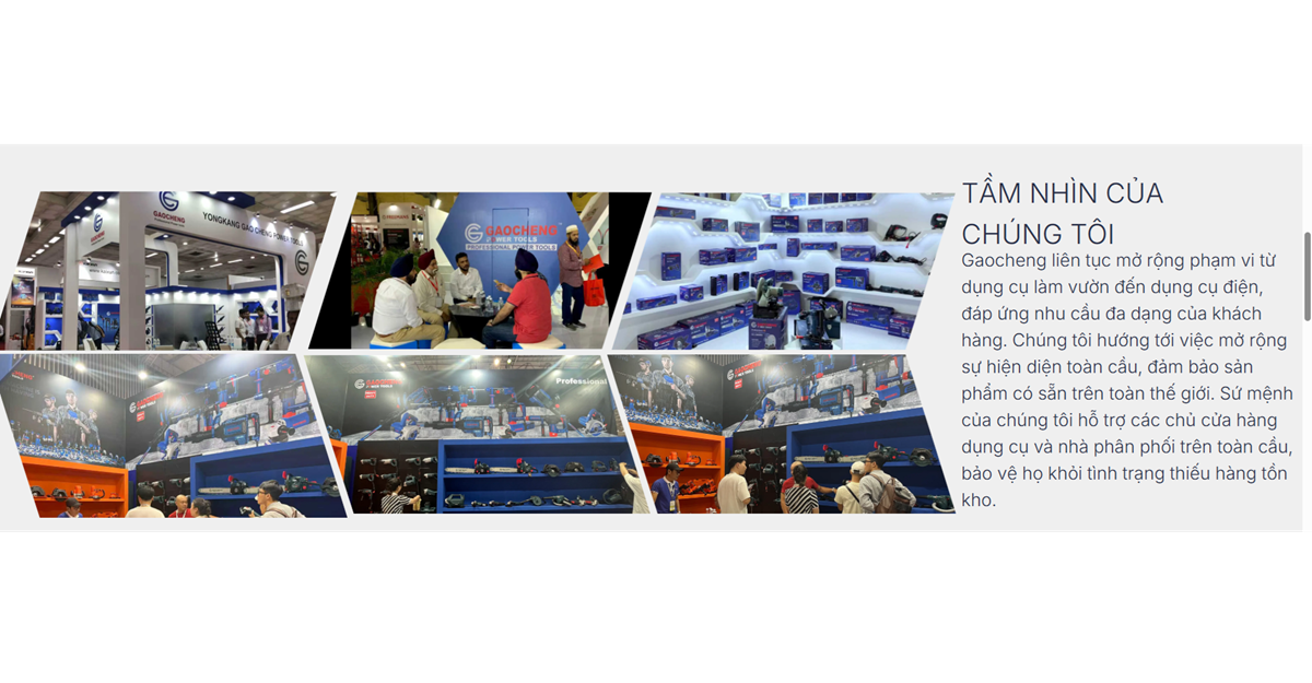 Được thành lập vào năm 2010 và có trụ sở chính tại Yongkang, Chiết Giang – được biết đến là "Thủ đô phần cứng của Trung Quốc" – Gaocheng Power Tools là một doanh nghiệp chuyên nghiệp về công cụ điện tích hợp R&D, sản xuất và bán hàng. Được hướng dẫn bởi triết lý R&D cốt lõi "hiệu quả, độ bền và an toàn", dải sản phẩm của công ty bao gồm một loạt các công cụ điện, bao gồm khoan điện, búa khoan xoay, máy mài góc và máy cắt, được sử dụng rộng rãi trong xây dựng và trang trí, sản xuất công nghiệp, bảo trì nhà ở và các lĩnh vực khác.