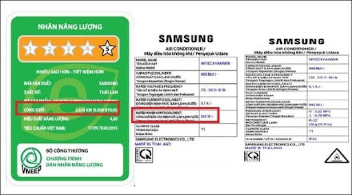 Công suất điều hòa tiêu thụ điện được in trên nhãn