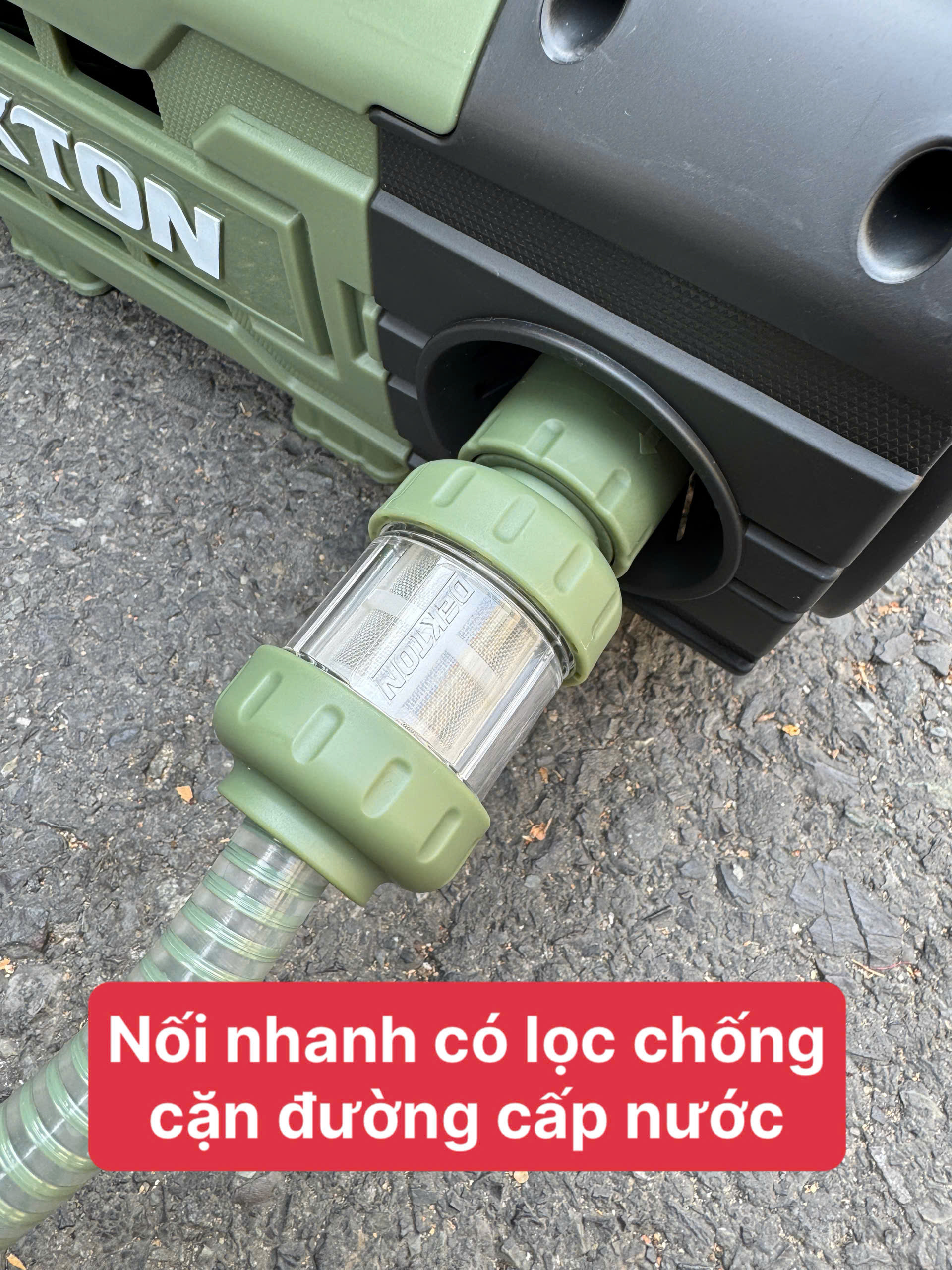 Nối nhanh có lọc rác và lọc thùng giúp ngăn tạp chất, bảo vệ đường nước vào và kéo dài tuổi thọ máy.