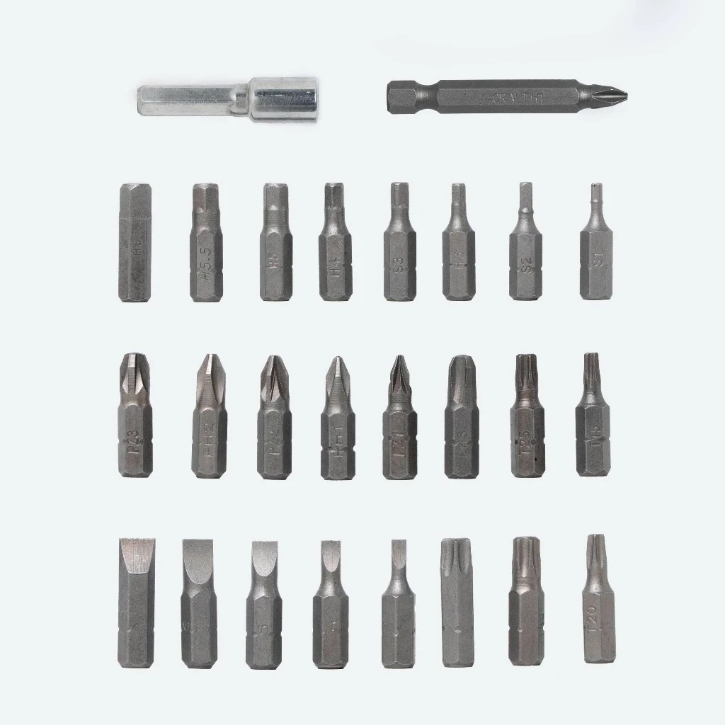 Bộ sản phẩm bao gồm nhiều đầu vít thông dụng, giúp bạn xử lý mọi loại ốc vít trong gia đình: đồ gỗ, đồ điện, nội thất, máy móc…